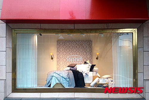 17일부터 롯데백화점 구리점의 쇼윈도를 장식할 제품은 태평양물산의 침구 브랜드 '소프라움'이다.