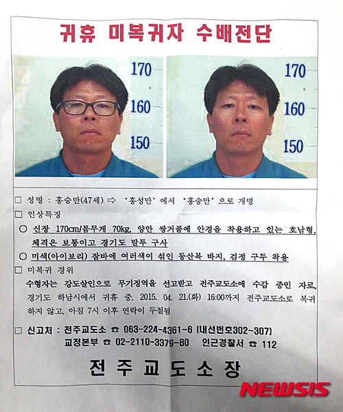 한편 전주교도소는 수배령을 내려져 있는 홍씨에 대해 24일 오전 8시를 기해 현상금 1000만원과 공개수배를 내릴 예정이다.