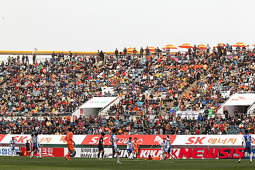 【제주=뉴시스】장재혁 기자 = 제주유나이티드(SK 에너지 축구단)는 지난 5일 열린 '현대오일뱅크 K리그 클래식 2015 9라운드' 제주와 울산과의 경기를 관람하기 위해 경기장을 찾은 관중이 2만명을 넘었다고 6일 밝혔다.
