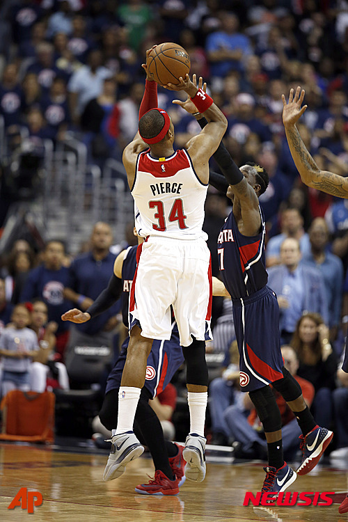 【서울=뉴시스】오종택 기자 = 미국프로농구(NBA) 워싱턴 위저즈가 4쿼터 종료와 함께 터진 포워드 폴 피어스(13점)의 위닝 버저비터에 힘입어 애틀란타의 막판 매서운 추격을 뿌리쳤다.