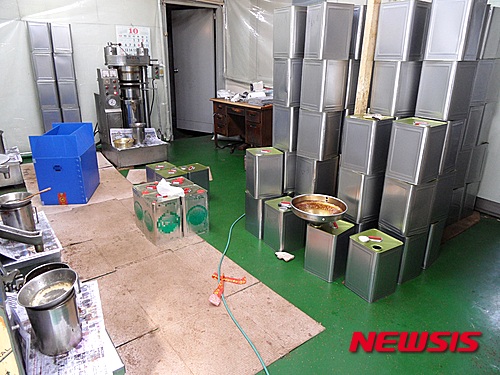 【서울=뉴시스】손대선 기자 = 주택가에 참기름 공장을 차려놓고 옥수수기름을 섞어 만든 가짜 참기름을 제조·판매해 수십억원의 부당이득을 챙긴 제조업자가 덜미를 잡혔다.