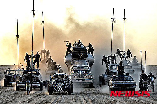 【서울=뉴시스】손정빈 기자 = "멋지군! 끝내주는 날이야!" 폭군 임모탄(휴 키스-번)이 지배하는 도시 시타델에서 도망친 사령관 퓨리오사(샤를리즈 테론)를 추격하는 '워보이' 눅스(니콜러스 홀트)는 신나게 차를 몰며 이렇게 외친다. 영화 '매드 맥스:분노의 도로'(이하 '매드 맥스')의 이 대사는 조지 밀러 감독이 흡사 자신이 연출한 이 영화가 어떤 작품인지를 웅변하는 듯하다. "멋지군! 끝내주는 영화야!" 눅스의 말 그대로다. '매드 맥스'는 정말 "끝내주는" 영화다. 거대한 덩치의 '워머신'(자동차) 수십 대가 끝도 없이 펼쳐진 사막을 링 삼아 뒤엉키는 모습은 마치 프로레슬링 단체 'WWE'의 스페셜 매치 '로얄럼블'(레슬러 수십 명이 시간에 맞춰 차례로 링에 올라 한 명이 남을 때까지 싸우는 룰의 경기)을 보는 듯하다. 그리고 '매드 맥스'는 이 레슬링의 '월드 헤비 웨이트 액션 챔피언'이다.