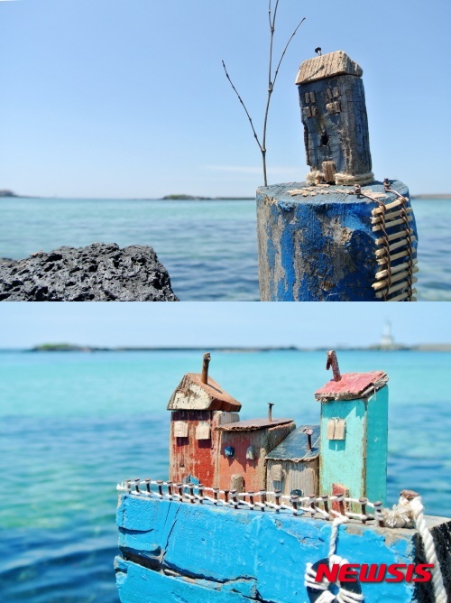 김 작가는 해양 쓰레기를 직접 수거해 배, 고래, 등대, 집 등 제주 바다와 어우러진 작품과 가구로 재창조했다.