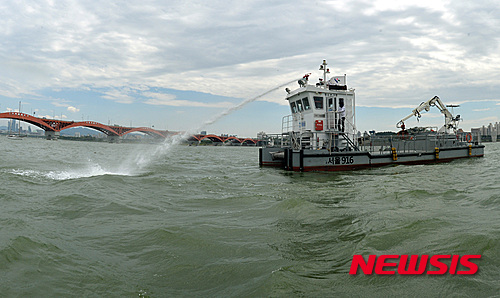 평소 한강 수면의 쓰레기를 긁어 청소하는 선박에 소위 '물대포'를 설치, 녹조 분산 작업을 하는 것이다.