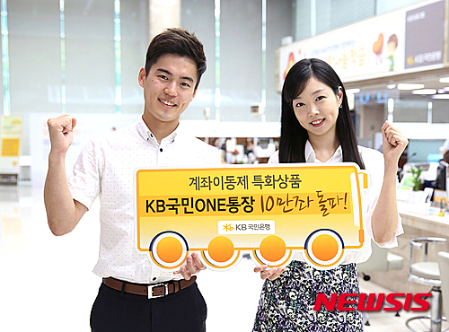 【서울=뉴시스】이인준 기자 = KB국민은행은 오는 10월 계좌이동제 도입에 대비해 개발한 'KB국민ONE통장'이 출시 한 달이 채 되기도 전에 10만좌가 개설됐다고 26일 밝혔다.
