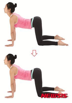 1. 기어가는 자세에서 두 손과 두 무릎을 각각 어깨너비만큼 벌린다.