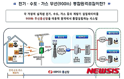 한전 관계자는 "각 가정에 설치된 전기와 수도, 가스의 계량기 검침데이터를 900㎒ 무선통신망으로 원격에서 통합검침하는 신기술"이라며 "통합검침 인프라를 활용해 치매노인 위치확인, 독거노인 안심 서비스 등 사회안전망 서비스로 확대 활용할 수도 있다"고 말했다.