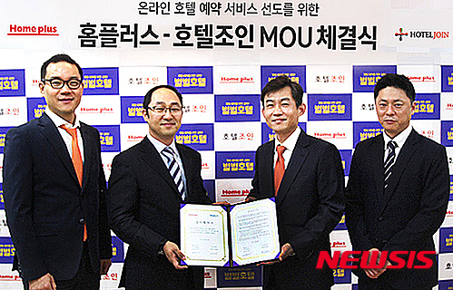 【서울=뉴시스】양길모 기자 = 홈플러스는 온라인 호텔 예약 사이트 호텔조인(www.hoteljoin.com)과 업무협약을 체결하고 국내외 호텔 예약 서비스를 시작한다고 23일 밝혔다.