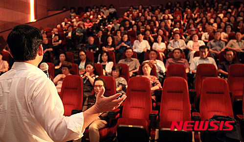 【청주=뉴시스】이병찬 기자 = '꿩 먹고 알 먹는' 새누리당 정우택(충북 청주 상당) 의원의 영화관 의정보고회가 지지자들로부터 인기를 얻고 있다.