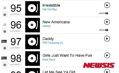 싸이가 지난 1일 공개한 정규 7집 '칠집싸이다'의 더블 타이틀곡 중 하나인 '대디'가 19일 자 '핫100'에 97위로 데뷔했다.