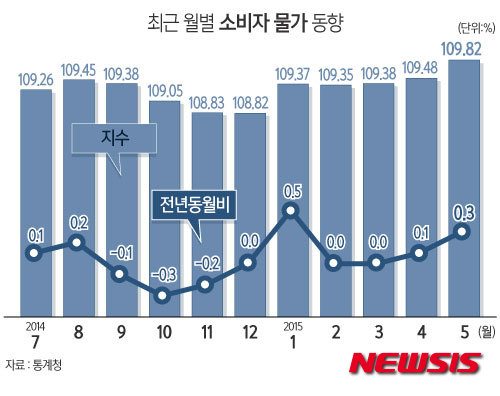 국민소득에 영향을 주는 모든 경제활동을 반영하는 종합 물가지수인 GDP 디플레이터를 살펴보면 2013년 0.9%, 2014년 0.6% 등 0%대를 유지하고 있다.