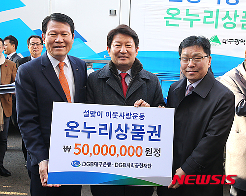 이 상품권은 대구사회복지공동모금회에 전달돼 대구시 8개 구·군청이 추천한 취약계층 1000여세대의 설맞이 장보기 비용으로 전달될 예정이다.