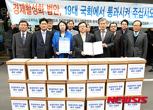 대한상의, 전경련, 무협, 중기중앙회, 경총, 중견련, 은행련 등 7개 경제단체는 경제활성화 법안 처리를 요청하는 공동 성명서를 국회측에 전달했다.