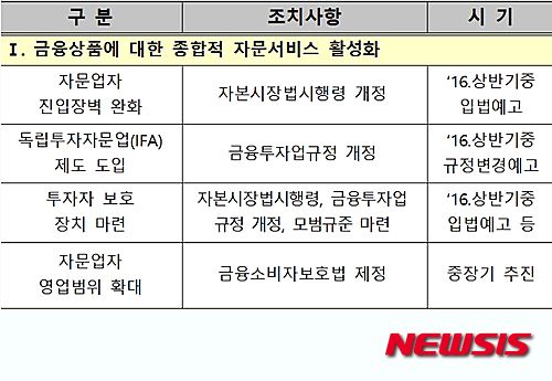 모든 금융상품에 대한 자문 가능하도록 관련 제도 개선 검토