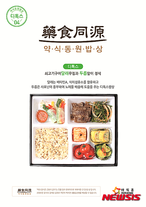 아워홈 관계자는 "올바른 식습관만 유지해도 당뇨와 고혈압 등 성인병을 예방할 수 있다"며 "소비자들의 이해를 돕기 위해 약식동원밥상에 쓰인 식재의 영양소와 효능은 물론이고, 키·체중별 필요열량 및 적정 식사속도 등 올바른 식사습관 관련 정보도 함께 제공할 계획"이라고 말했다.