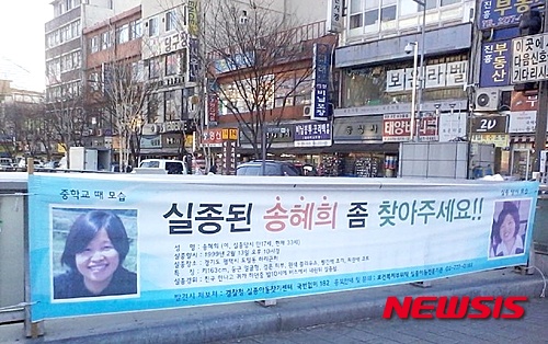 서울2호선 을지로4가역과 1호선 종로5가역 사이 청계천 배오개 다리 위에는 '실종된 송혜희 좀 찾아주세요'라는 송씨의 사연이 적힌 현수막이 있다.