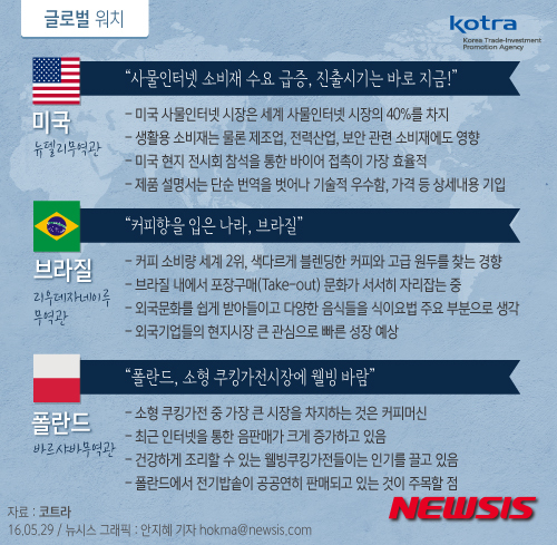 현재 미국의 사물인터넷 소비재는 뚜렷한 제품 라인이나 기능적 추세가 형성되지 않아 국내 기업들도 현지 맞춤형 기술과 제품을 통해 진출 기회를 노릴 때라고 코트라 측은 조언했다.