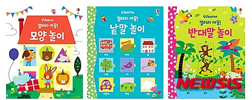 【서울=뉴시스】박현주 기자 = 어스본 코리아(www.usborne.com)가 책 속의 알록달록한 플랩으로 모양과, 낱말, 반대말을 자연스레 익힐 수 있는 '열려라 까꿍!' 플랩북 시리즈 3종을 출간했다.