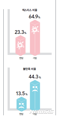 특히 각방을 쓰는 부부는 64.9%가 부부관계를 갖지 않는 것으로 나타났다. 한 방을 쓰는 부부는 23.3%였다.