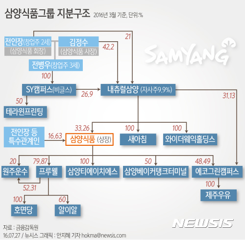 【서울=뉴시스】박주연 기자 = 삼양식품그룹의 유일한 공개기업인 삼양식품은 불투명한 지배구조속에 이사회 견제장치도 사실상 '불능'상태인 것으로 평가 받고 있다.