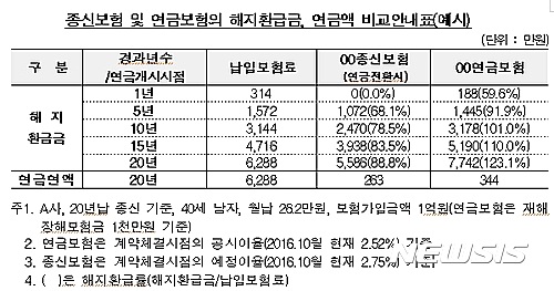 수수료 많이 떼 연금보험보다 수령액·해지환급금 모두 적어