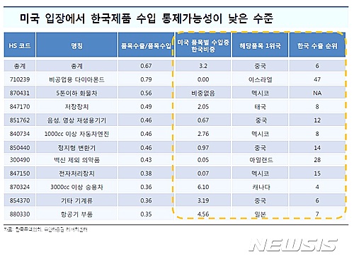 정원일 유안타증권 연구원은 "해당 품목 1위 국가의 장벽이 높은 것으로 볼 때 '멕시코'와 '중국'이 위험한 수준"이라며 "한국 수출에 미칠 타격은 당장 발생할 가능성이 낮다"고 분석했다.