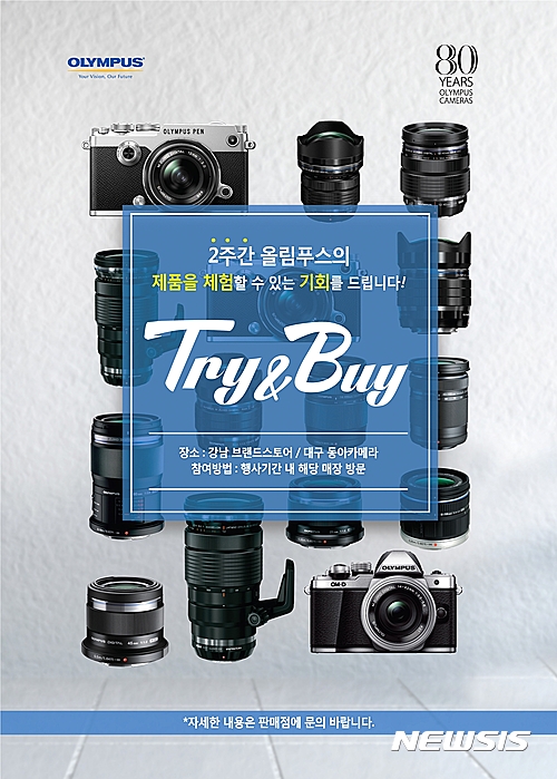 【서울=뉴시스】최현 기자 = 올림푸스한국은 자사의 최신 미러리스 카메라와 렌즈를 2주간 무상으로 사용할 수 있는 체험 프로그램 '트라이앤바이(Try&Buy)'를 실시한다고 16일 밝혔다.