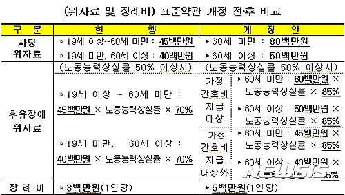 사망 위자료 한도는 최고 4500만원에서 8000만원으로 오르고 중상해자는 입원할 때 간병비도 받을 수 있다.