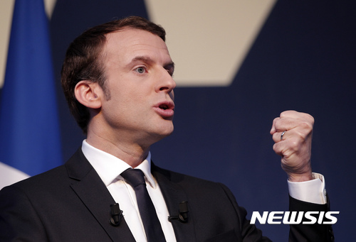【서울=뉴시스】이지예 기자 = 프랑스 중도 무소속 대선 후보인 에마뉘엘 마크롱(39) 전 경제장관은 7일(현지시간) 좌우 모두로부터 무시받던 '중산층의 수호자'가 되겠다고 강조했다.