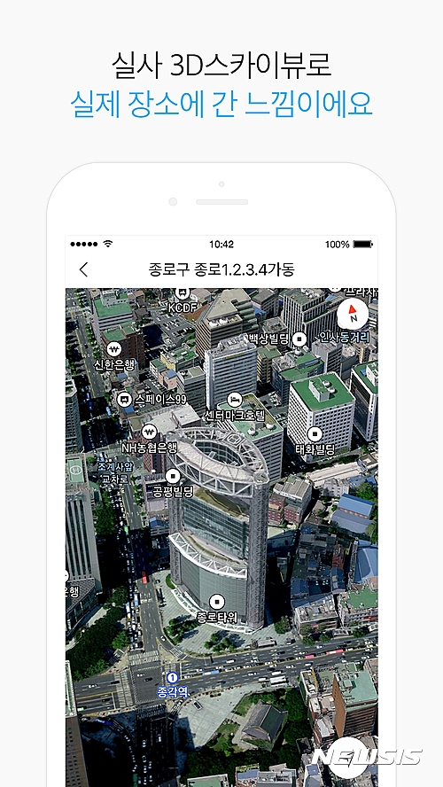 카카오맵은 iOS 앱 출시와 함께 3D 스카이뷰 서비스 지역을 기존의 서울·성남 지역에서 6개 광역시를 포함한 전국 주요 도시의 일부 도심으로 확대했다.