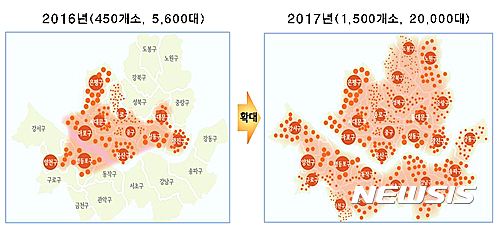【서울=뉴시스】박대로 기자 = 서울시 공공자전거 '따릉이'가 연내 2만대까지 늘어나 서울 전역에서 이용할 수 있게 될 전망이다.