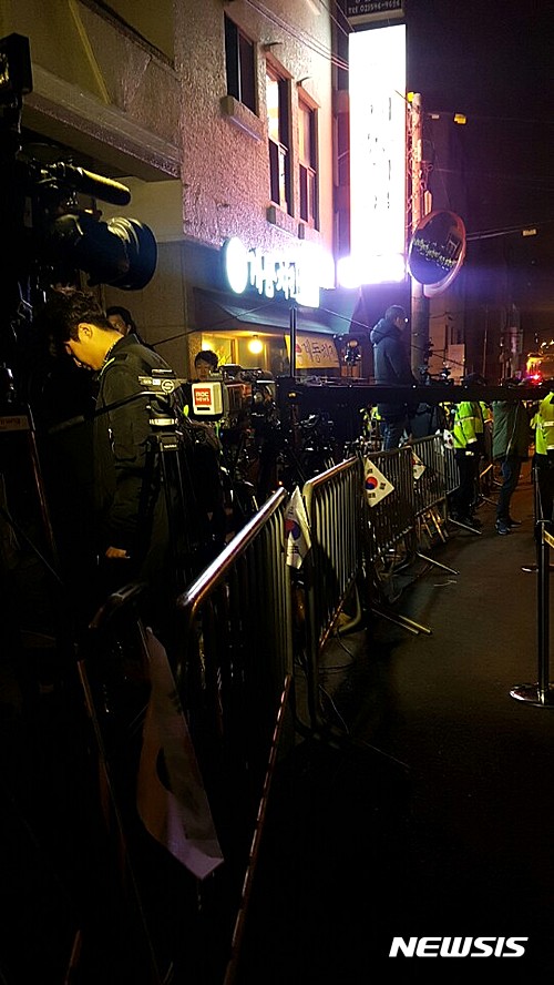 내외신 취재진들이 동이 트기 전부터 카메라와 촬영용사다리 등 취재 장비를 끌고 나와 자리 선점을 벌였다. 분초를 다투는 통신사들 뿐 아니라 방송국들은 시시각각 자택 앞 상황을 중계했다.