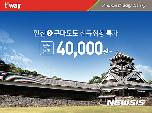 【서울=뉴시스】김동현 기자 = 티웨이항공이 구마모토 노선의 정기편 운항을 시작한다.