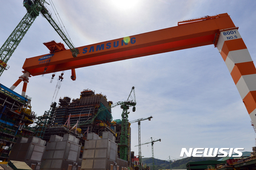 【거제=뉴시스】최운용 기자 = 삼성중공업 거제조선소가 크레인 사고 발생 6일째인 6일 오전부터 일부 작업장에 대해 조업을 재개했다.
