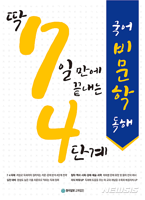 '딱 7일 만에 끝내는 4단계 국어 비문학 독해'는 이 같은 추세를 감안한 교재다. 학생들이 비문학 독해, 문제풀이에서 어떤 문제점을 갖고 있는지를 자가 점검할 수 있도록 만들어졌다. 선생님이 학생 옆에서 독해와 문제풀이 비법을 하나하나 짚어주며 알려주듯 친절한 설명을 제시하는 것이 이 책의 가장 큰 특장이다.