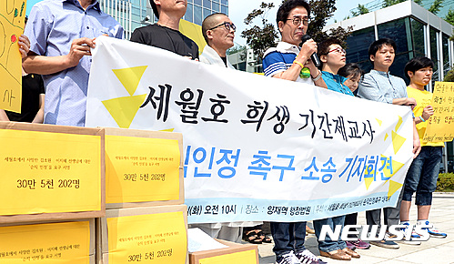 【세종=뉴시스】백영미 기자 = 세월호 참사로 희생된 기간제 교사 2명의 순직이 인정되면 공무원연금법, 국가유공자법 등을 적용받아 유가족은 생계보장, 취업가산점 등 혜택을 받게 된다.