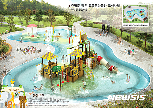 물놀이시설은 미루나무숲 인근에 조성된 실개천, 바닥분수, 줄타기놀이시설 등과 연계해 명품 놀이시설로 인기를 끌 것으로 군은 기대하고 있다.