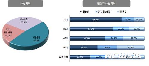 경기·인천 출생자 비율이 높은 자치구는 종로(26.4%)·성북(23.8%)·중구(23.8%)였다.