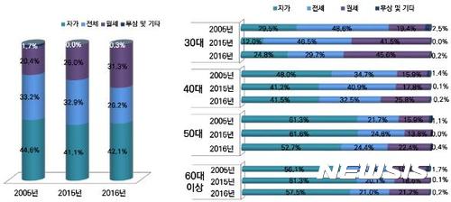 30대 월세 비율은 2005년 19.4%에서 지난해 45.6%로 급증했다. 서울시는 "젊은 가구주의 주거상황이 녹록하지 않음을 알 수 있다"며 "이는 젊은 가구주가 집을 소유하기 힘든 경제적 요인이 가장 크며 다른 한편으로 젊은 가구주들의 집 소유에 대한 생각도 변화하고 있기 때문"이라고 분석했다.