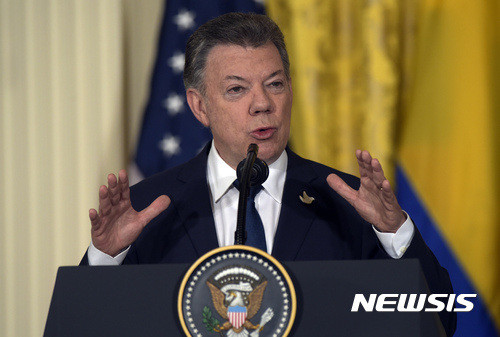 【 보고타( 콜롬비아) = 신화/뉴시스】차미례 기자 = 콜롬비아의 후안 마누엘 산토스 대통령은 17일(현지시간) 보고타 시내에서 일어난 테러로 3명의 사망자가 발생 한 뒤 TV연설을 통해 포르투갈 공식방문 계획을 취소한다고 발표했다.