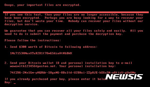 【서울=뉴시스】오동현 기자 = '페트야(Petya) 랜섬웨어'의 새로운 변종이 미국과 유럽을 넘어 아시아를 강타하면서 국내 확산에도 경고등이 켜졌다.