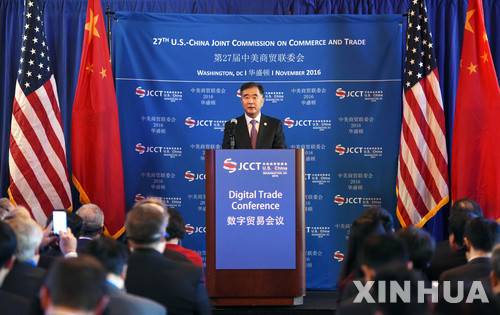 매체에 따르면 미중 포괄적 경제대화 참석차 워싱턴을 방문한 왕 부총리는 전날 미중 경제계가 공동 주관한 오찬에 참석, 기조 연설을 통해 미중 간의 협력이야말로 양국 간 유일한 올바른 선택이라며 이같이 언명, 도널드 트럼프 행정부의 보호무역주의에 견제구를 날렸다.