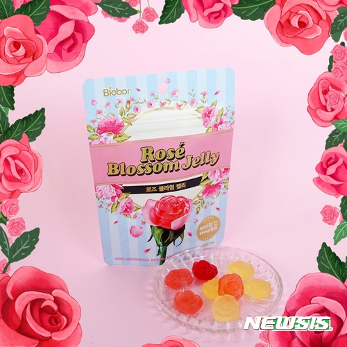 로즈블러썸젤리는 3가지 색깔(레드, 핑크, 화이트)로 구성돼 있다. 장미 특유의 향을 느낄 수 있는 달콤한 상품이다.