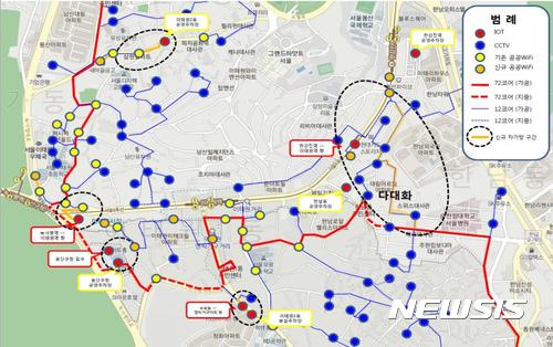 용산구는 이태원 관광특구 주변 사물인터넷용 자가통신망(3.69㎞)을 신규 포설하고 용량이 부족한 기설 광케이블(2.38㎞)은 철거한다. 근거리통신망(LAN) 케이블 공사와 광케이블 접속 함체, 전원설비 설치도 함께 이뤄진다.
