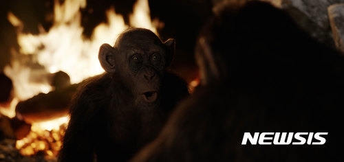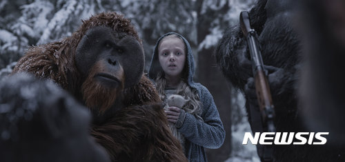 【서울=뉴시스】 손정빈 기자 = '혹성탈출' 세 번째 편(감독 맷 리브스)의 부제 '종(種)의 전쟁'은 유인원과 인간이 상대 종을 절멸하기 위해 벌이는 투쟁을 뜻하지 않는다. 러닝타임 140분 동안 두 종족이 전투하는 장면은 10분 분량의 오프닝 시퀀스 외에 없다. 한쪽이 제거돼야 다른 한쪽이 살아남을 수 있다는 식의 제로섬 게임은 애초에 없었다. 이 전쟁은 매파와 비둘기파의 의견 충돌에 이은 합의 실패가 만들어낸 것으로('반격의 서막') 사실상 위기는 안에서 촉발했고, 내분 전까지만 해도 두 종은 공존할 수 있었다. '종의 전쟁'은 곧 '종 내부의 전쟁'이다.