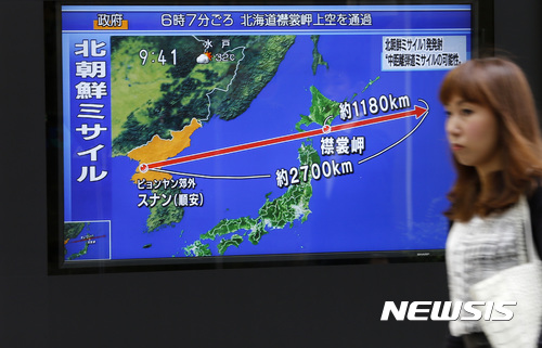 【도쿄=뉴시스】 조윤영 기자 = 북한이 29일 새벽 사전 예고 없이 탄도미사일을 발사하자, 일본 정부가 발사후 4분뒤 전국순간경보시스템(J얼럿)과 긴급정보네트워크시스템(엠넷)을 홋카이도현, 도호쿠현 등 12개 지역에 발령시키는 등 일본 전역은 초긴장 상태에 빠졌다.