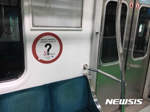 지하철 2·9호선 전동차에는 노약자석과 임산부 배려석을 중심으로 '~이 궁금한가요? 찾동이 찾아갑니다'라는 문구가 적힌 딱지를 붙인다.