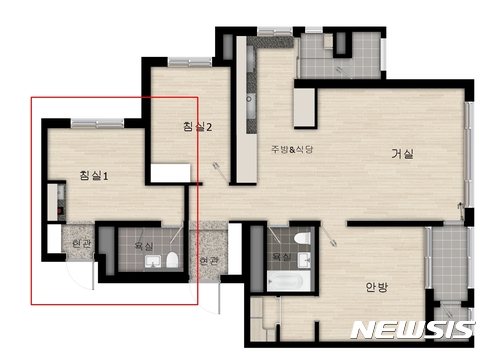 부분임대형으로 선택(유상옵션)시에는 수납공간 대신에 현관이, 침실1 한쪽에 작은 조리공간이 제공 돼 원룸형 구조로 활용할 수 있다. 출입문과 부엌, 욕실 등이 모두 2개로 구분 돼, 임대인과 세입자는 마주치지 않고 완전히 독립된 생활이 가능할 전망이다.