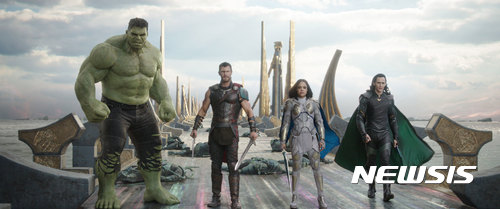 【서울=뉴시스】 손정빈 기자 = '토르:라그나로크'(감독 타이카 와이티티) 이전 마블스튜디오가 내놓은 3부작은 '아이언맨'과 '캡틴아메리카'로, 두 영웅은 마블시네마틱유니버스를 대표하는 인물이다.