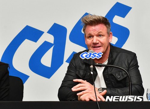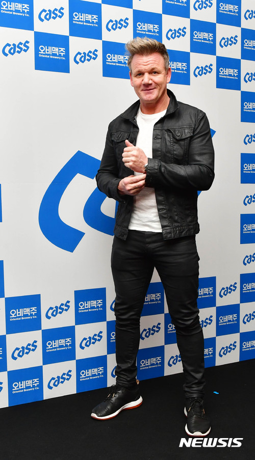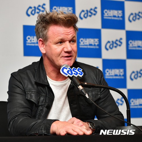 【서울=뉴시스】김종민 기자 = 카스의 새 광고 모델인 '거장 셰프' 고든램지가 한국 소비자들을 만나기 위해 처음으로 서울을 찾았다.방한 중인 고든 램지는 지난 18일 오후 한국 기자들과 만나 특유의 거침없는 입담으로 자신의 요리인생과 철학, 한국맥주와 음식에 대한 견해 등을 솔직하게 피력했다.